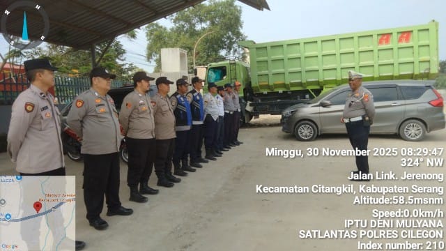 Cilegon - Panit Lantas Polsek Ciwandan IPTU Deni Mulyana Bersama Personil Gabungan Polres Cilegon Polda Banten melaksanakan Kegiatan KRYD Dan Himbauan SK Gubernur Dan monitoring stokfile pasir Didaerah hukum Polsek Ciwandan, Minggu (30/11/2025).