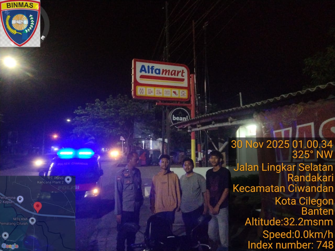 Cilegon - Bhabinkamtibmas Polsek Ciwandan Polres Cilegon Polda Banten Lakukan Sambang Malam guna mengantisipasi aksi kejahatan pada daerah binaan dan memberikan rasa aman dan nyaman kepada warga binaan, Minggu (30/11/2025).