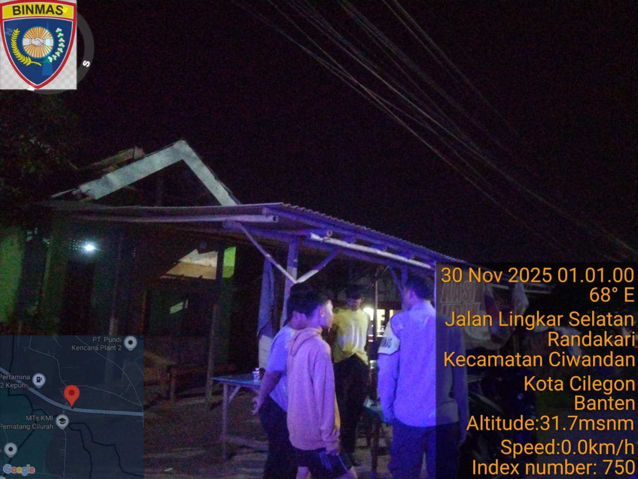 Cilegon - Bhabinkamtibmas Polsek Ciwandan Polres Cilegon Polda Banten Lakukan Sambang Malam guna mengantisipasi aksi kejahatan pada daerah binaan dan memberikan rasa aman dan nyaman kepada warga binaan, Minggu (30/11/2025).