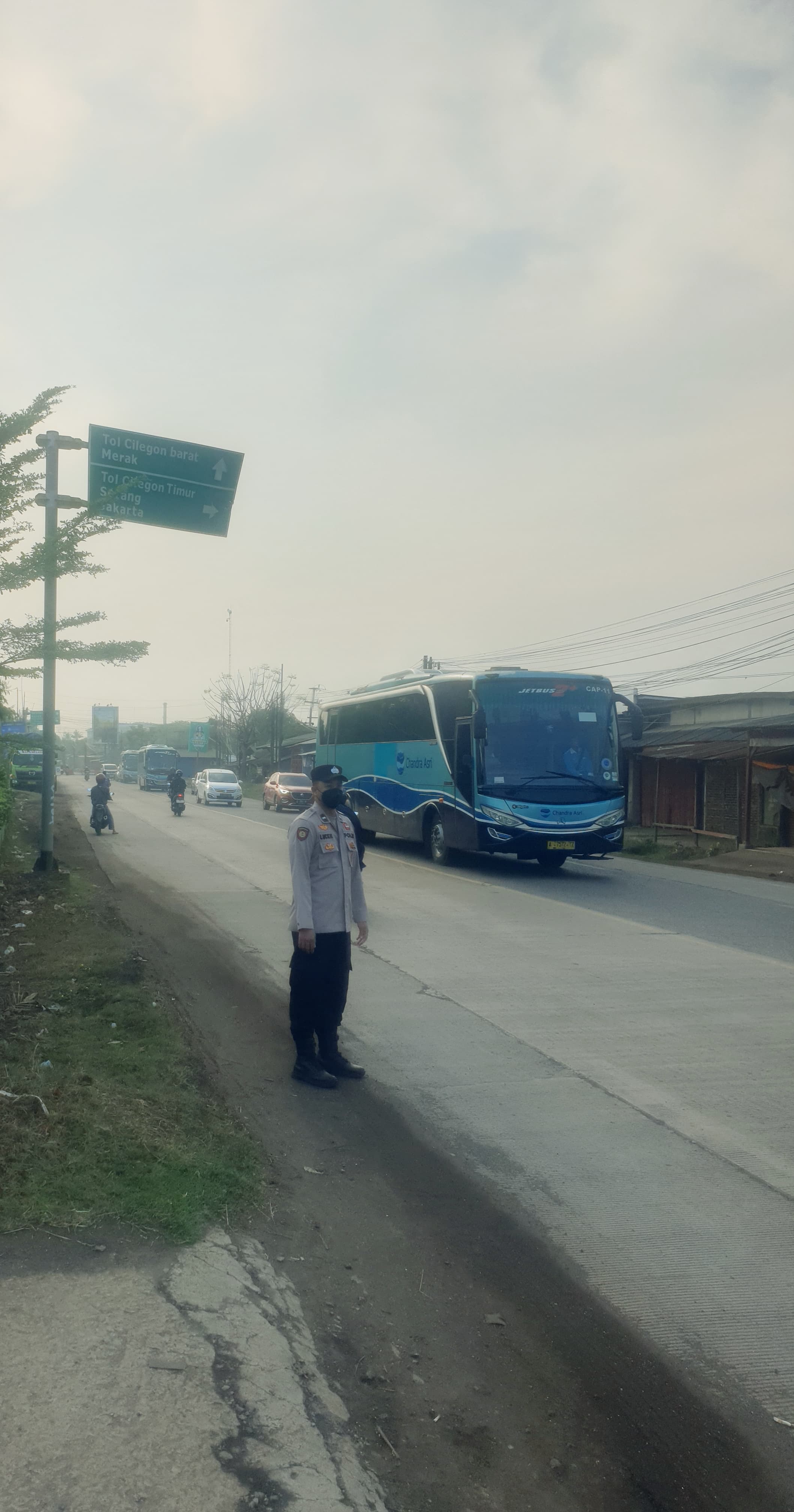 Kapolres Cilegon AKBP Martua Raja Taripar Laut Silitonga Melalui Kapolsek Kskp Banten Polres Cilegon AKP Fredo Leonard menyampaikan Laksanakan Pengamanan Sesuai plotinganya lakukan Pengaturan Supaya Arus Lalu Lintas tetap Berjalan lancar dan Pastikan tidak ada hambatan.