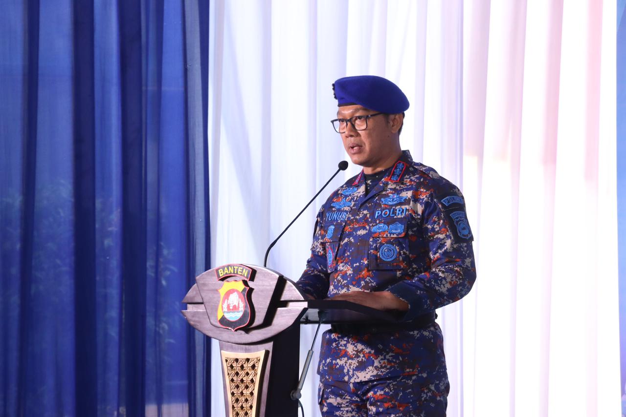 Dalam sambutannya, Dir Polairud Polda Banten Kombes Pol Yunus Hadith Pranoto, S.I.K., M.Si., menyampaikan rasa syukur atas perjalanan panjang dan dedikasi Polairud selama 75 tahun. Ia menegaskan bahwa jajaran Polairud Banten telah melaksanakan berbagai rangkaian kegiatan sosial, mulai dari bersih-bersih pantai, bakti religi, anjangsana kepada purnawirawan, tabur bunga, hingga penyaluran sembako kepada masyarakat pesisir Merak dan Anyer. Seluruh kegiatan tersebut menjadi wujud nyata Polairud dalam mendekatkan diri kepada masyarakat.