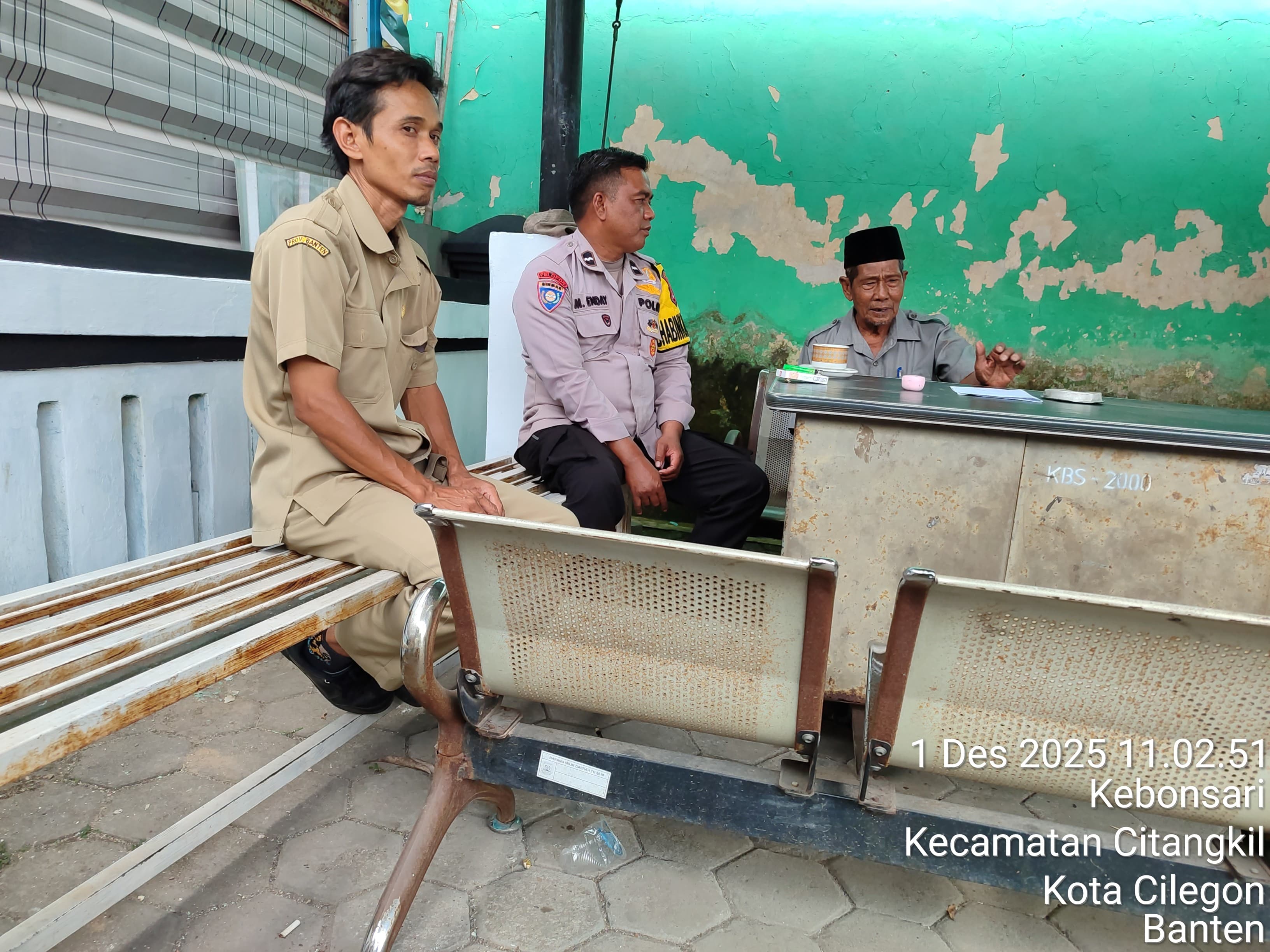 Cilegon - Bhabinkamtibmas Polsek Ciwandan Polres Cilegon Polda Banten Menyapa warga serta Ajak warga Binaannya untuk berperan aktif jaga keamanan lingkungan serta jalin komunikasi agar tercipta situasi aman di daerah hukum Polsek Ciwandan Polres Cilegon Polda Banten,Senin (01/12/2025).