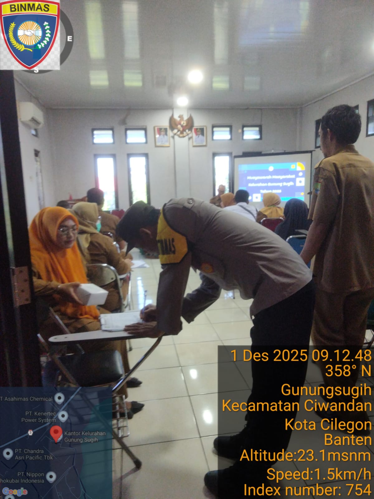 Cilegon - Bhabinkamtibmas Polsek Ciwandan Polres Cilegon Polda Banten Hadir Dalam Kegiatan (MMK) Musyawarah Masyarakat Kelurahan Bidang Kesehatan UPTD Puskesmas Ciwandan Tahun 2025 Di Aula Kantor Kelurahan Gunung Sugih, Selasa (01/12/2025).