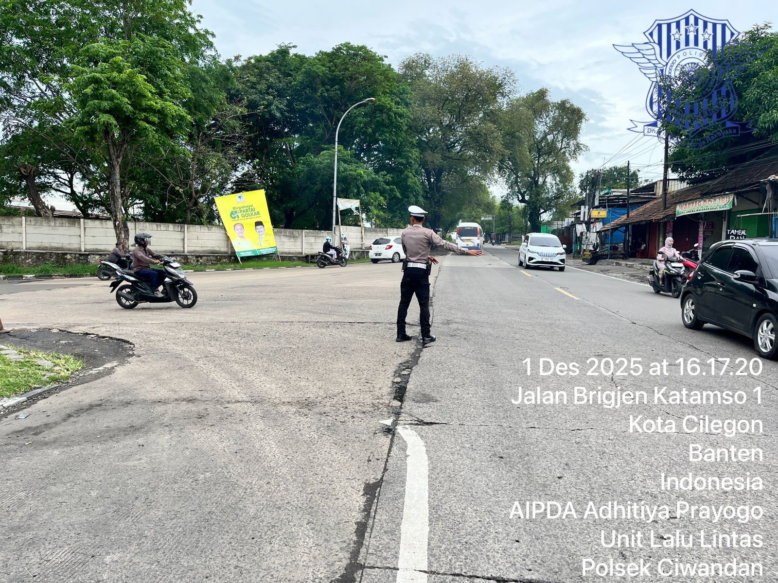 Cilegon - Tingginya mobilitas masyarakat pada jam-jam sibuk, tingkat kerawanan baik itu kemacetan ataupun kecelakaan pasti ada potensi, sehingga untuk mengantisipasi hal tersebut Personil Polsek Ciwandan Polres Cilegon Polda Banten Bhabinkamtibmas melaksanakan Strong Point pada sejumlah lokasi, Senin (01/12/2025).