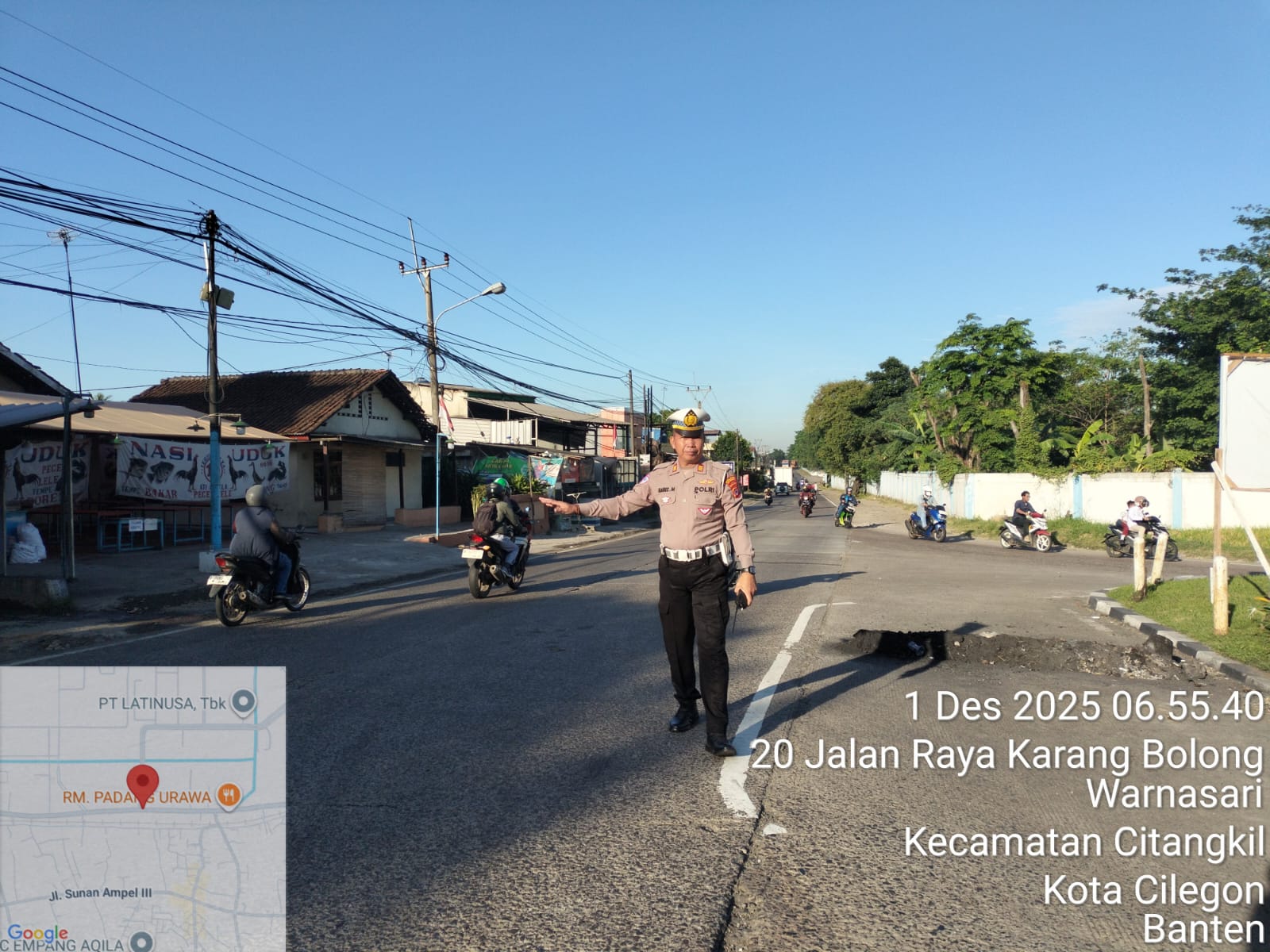 Cilegon - Tingginya mobilitas masyarakat pada jam-jam sibuk, tingkat kerawanan baik itu kemacetan ataupun kecelakaan pasti ada potensi, sehingga untuk mengantisipasi hal tersebut Personil Polsek Ciwandan Polres Cilegon Polda Banten Bhabinkamtibmas melaksanakan Strong Point pada sejumlah lokasi, Senin (01/12/2025).