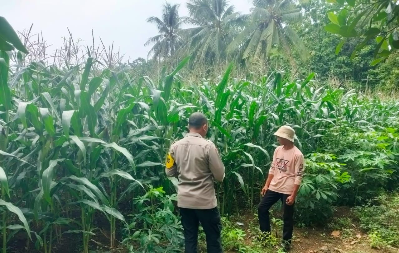 Personel Polsek Anyar Monitoring Tanaman Jagung di Kewilayahan