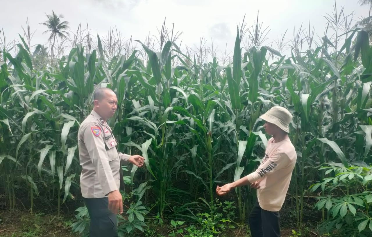 Bersama Petani Polsek Anyar Cek Tanaman Jagung di Kewilayahan