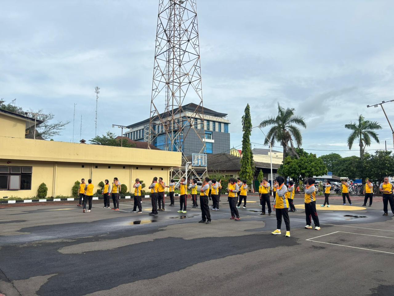 Personel Polres Cilegon Latih Fisik Pasca Apel Pagi
