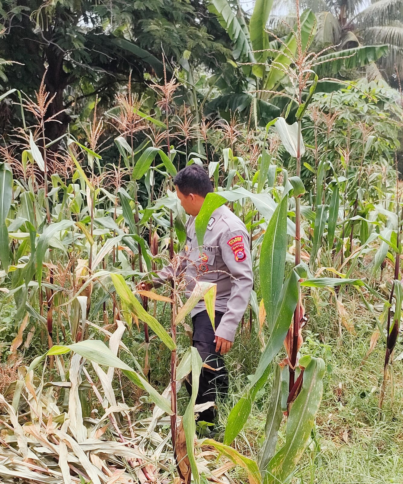 -POLRES CILEGON–Polda Banten. Bhabinkamtibmas JL. Pellet Kompleks KS Kelurahan Kotabumi Kecamatan Purwakarta Kota Cilegon, Bripka Agustoni, melakukan pendampingan dan pemeriksaan langsung tanaman jagung yang ditanam warga di areal tersebut. Kegiatan ini bertujuan untuk memantau kondisi tanaman serta memberikan dukungan kepada petani warga dalam upaya meningkatkan hasil panen.Rabu.(03-12-2025).