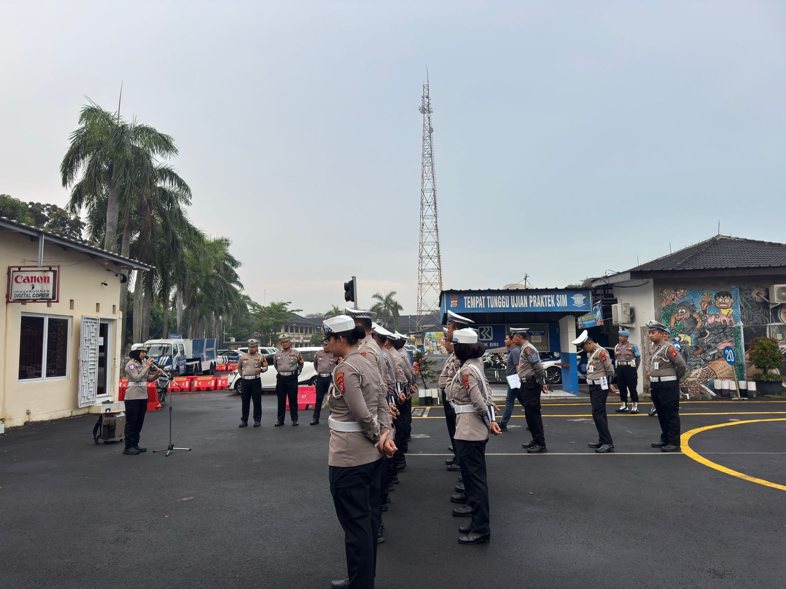 Cilegon, Satlantas Polres Cilegon Polda Banten – Kaurmintu Satlantas Polres Cilegon IPDA Dwi Chairani pimpin pelaksanaan apel Pagi yang dilakukan oleh personel Satlantas Polres Cilegon pada Pagi hari ini yang bertempat di Lapangan praktik SIM Satlantas Polres Cilegon, Rabu (3/12/2025) Pagi pukul 06.00 Wib.