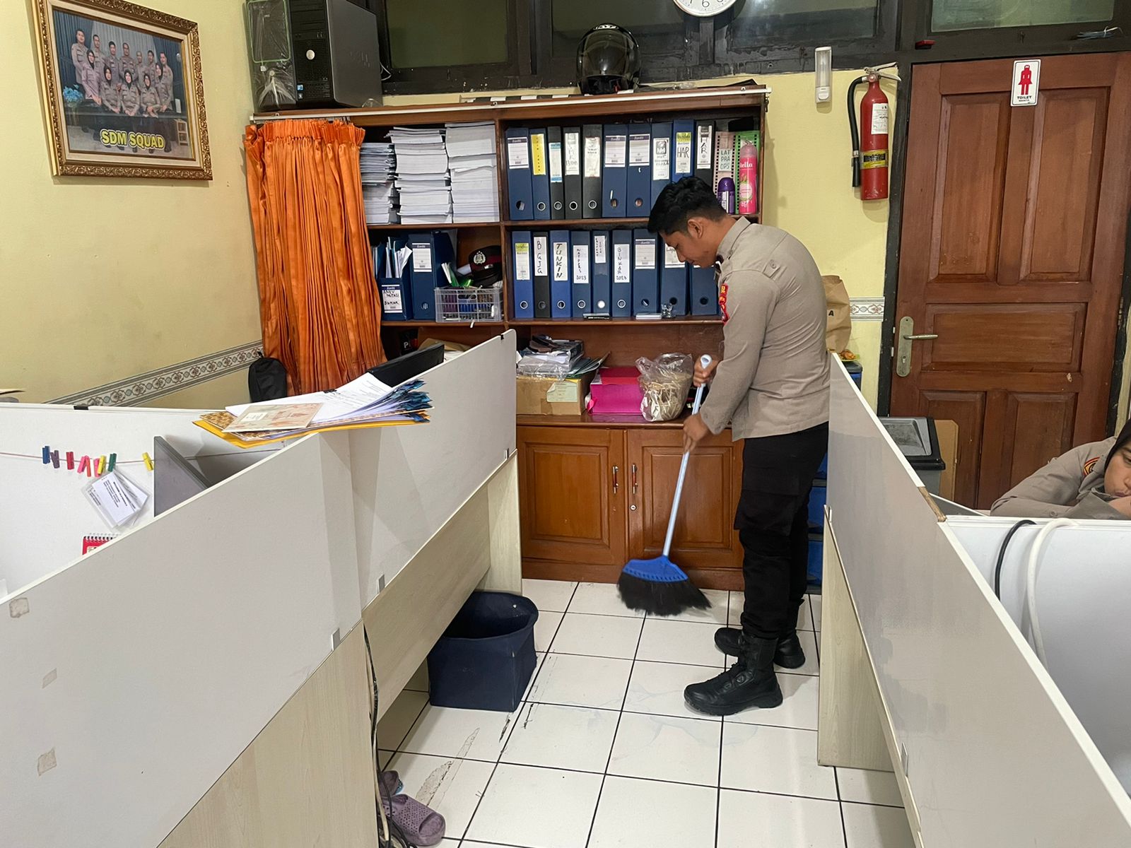 Anggota Bag SDM Polres Cilegon, selallu melaksanakan aktivias rutin dalam membersihkan ruangan kerja.