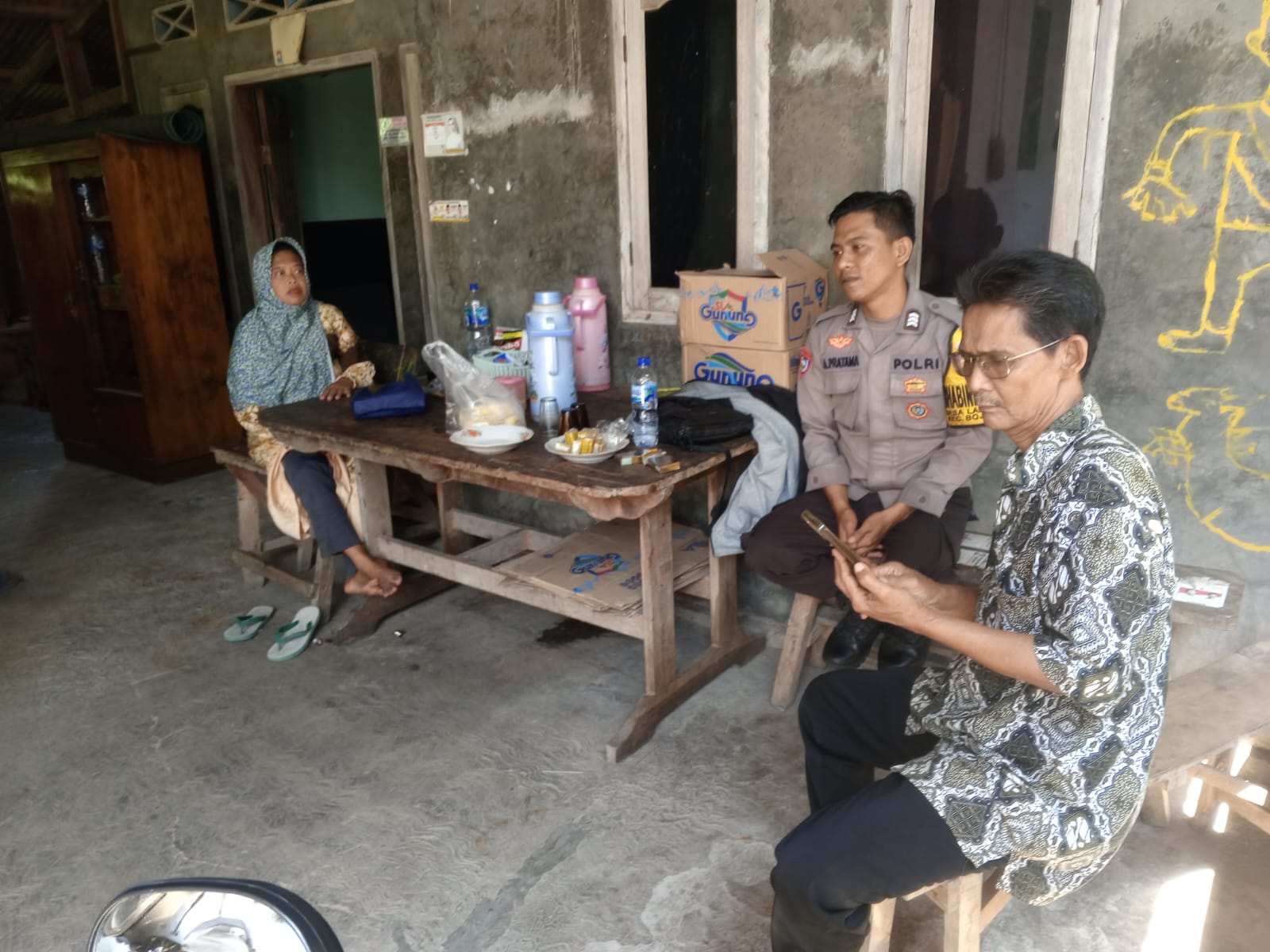 Dalam sambangnya, Bhabinkamtibmas menyampaikan pesan-pesan kamtibmas dan himbauan untuk bersama-sama menjaga kamtibmas khususnya di lingkungan masing-masing.