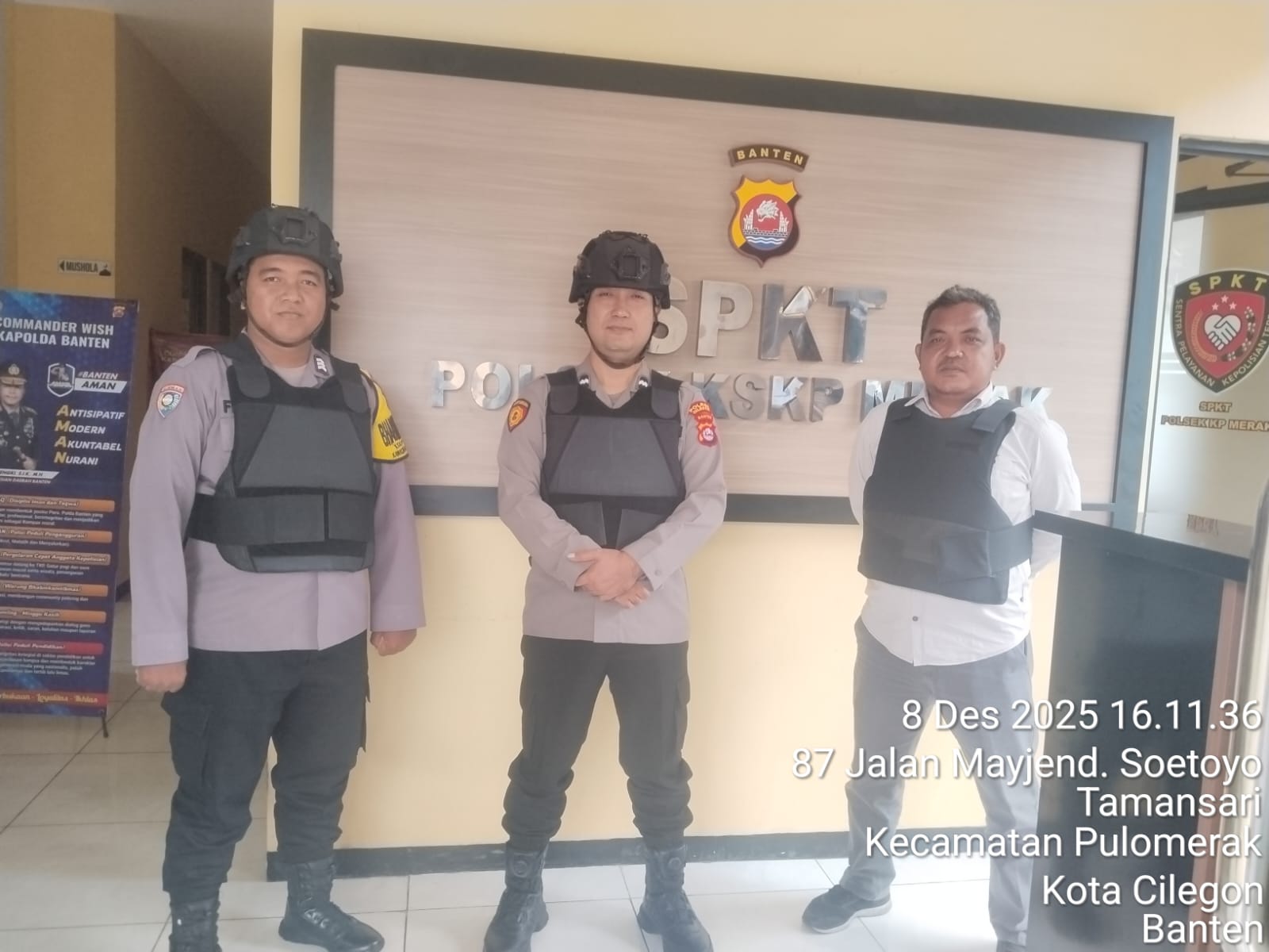 Cilegon - Personel piket jaga Polsek Kskp Merak Polres Cilgon Polda Banten melaksanakan siaga 1 Polsek pelaksanaan Sispam Mako oleh piket siaga dipimpin oleh Kspk Polsek Kskpy Merak Polres Cilegon Polda Banten, Senin(08/12/2025).
