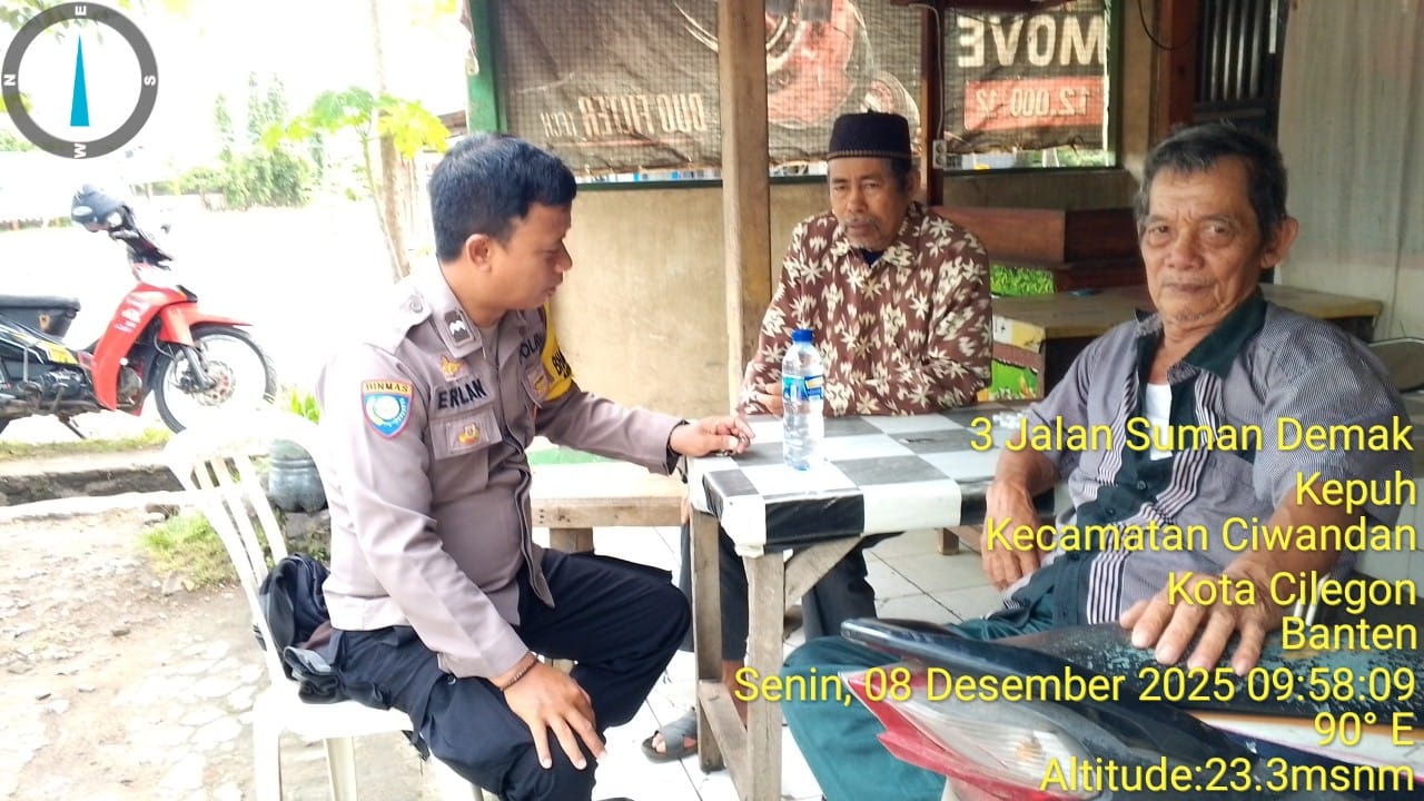 Cilegon - Bhabinkamtibmas Polsek Ciwandan Polres Cilegon Polda Banten melaksanakan kegiatan Sambang Dialogis Secara Door to Door Sistem (DDS) Di daerah Hukum Polsek Ciwandan, serta Berikan Pesan-pesan Kamtibmas Guna Menciptakan situasi Harkamtibmas yang Aman dan nyaman, Senin (08/12/2025).