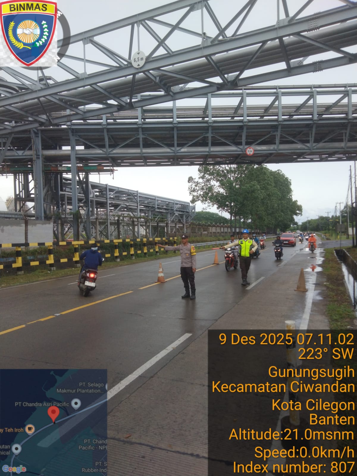 Cilegon - Personil  Polsek Ciwandan Polres Cilegon Polda Banten melaksanakan giat Strong Poin Pengaturan Lalu Lintas Disimpang Brown Kelurahan Gunung Sugih guna menciptakan ketertiban, keamanan dan Kelancaran Lalu-lintas bagi masyarakat, Senin (08/12/2025).