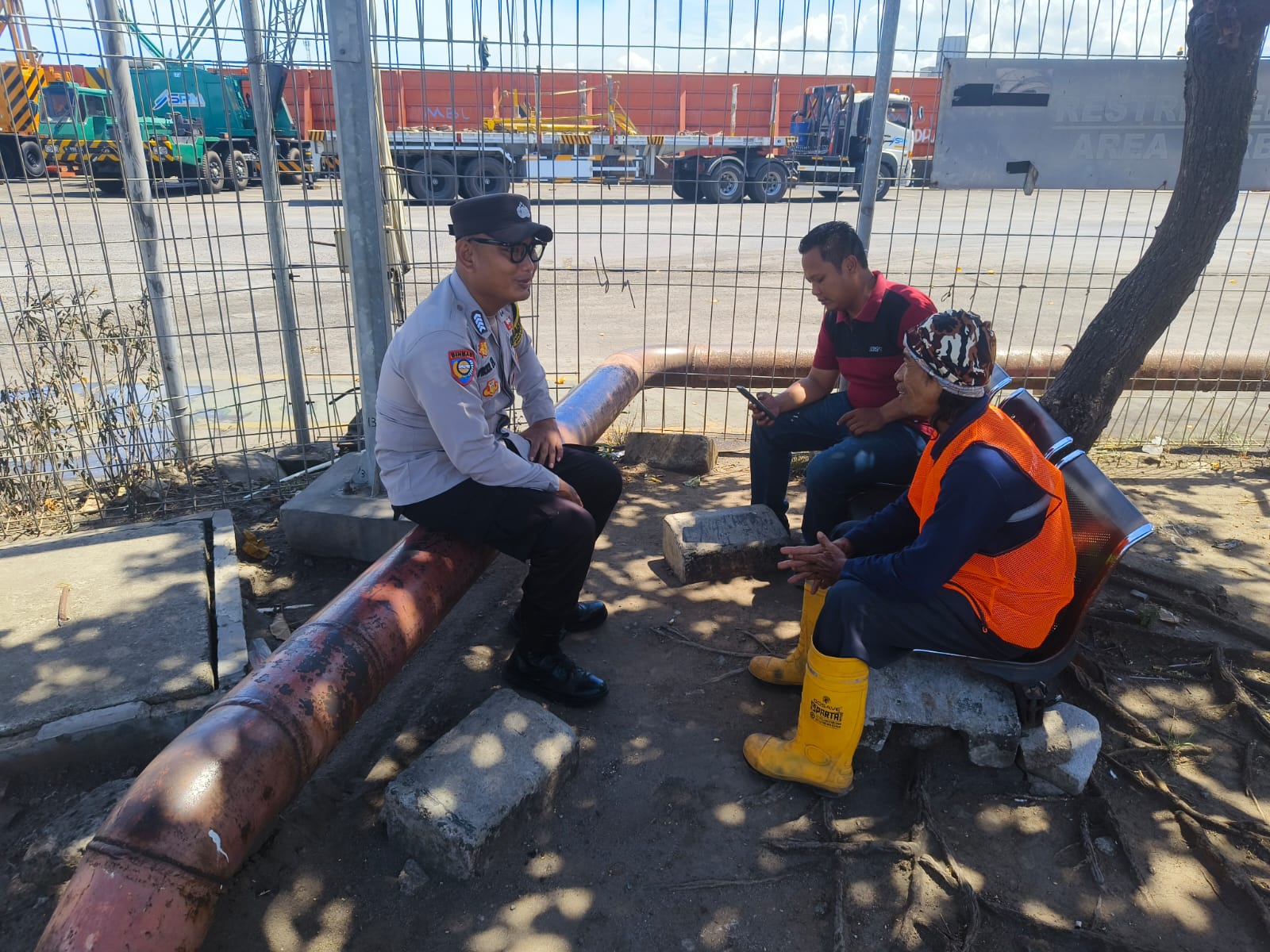 Jalin Silaturahmi, Personil Bhabinkamtibmas Polsek KP Banten Berbincang Dengan Buruh Pelabuhan