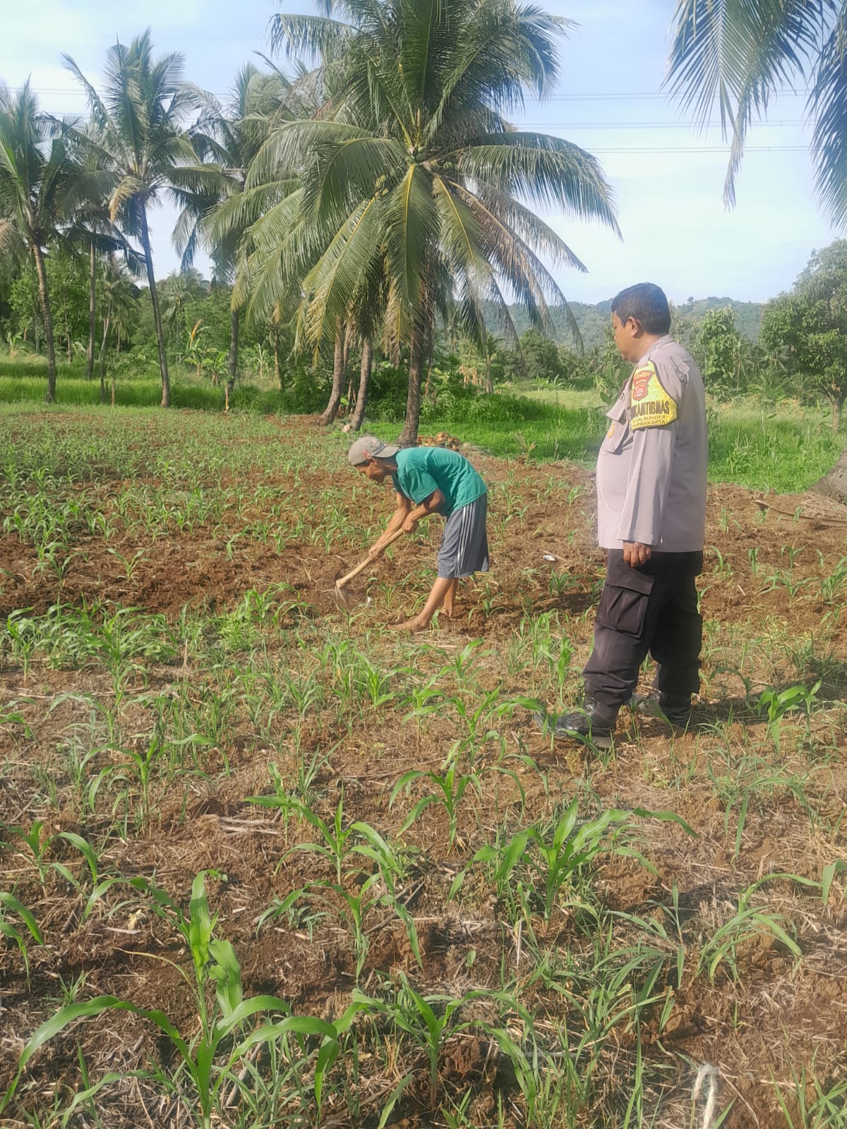 -Polres Cilegon–Polda Banten. Bhabinkamtibmas Desa Kubang Lampit, Aiptu Wawan Setiabudi dari Polsek Purwakarta Polres Cilegon, secara langsung mendampingi petani lokal dalam memeriksa kondisi tanaman jagung yang sedang tumbuh. Kegiatan ini bertujuan untuk mendukung program swasembada pangan yang digerakkan Pemerintah.Minggu.(14-12-2025).