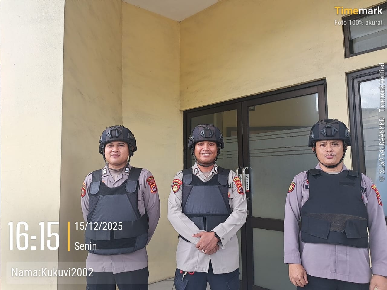 Cilegon - Personel piket jaga Polsek Kskp Merak Polres Cilgon Polda Banten melaksanakan siaga 1 Polsek pelaksanaan Sispam Mako oleh piket siaga dipimpin oleh Kspk Polsek Kskpy Merak Polres Cilegon Polda Banten, Senin (15/12/2025).