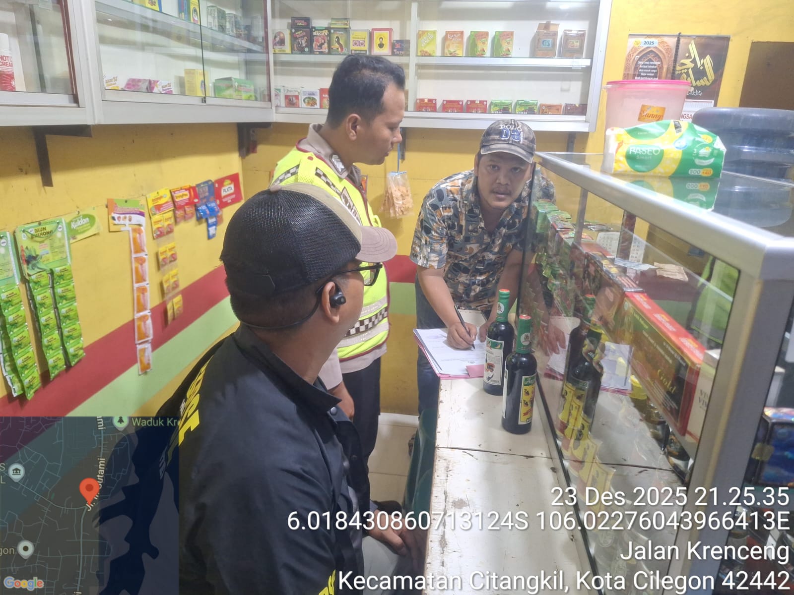 Cilegon - Menjelang Perayaan Natal Dan Tahun Baru 2026, Guna menekan Peredaran Minuman keras, Polsek Ciwandan Melaksanakan Kegiatan Operasi Miras Dibeberapa Toko Jamu yang Berada di daerah hukum Polsek Ciwandan Polres Cilegon Polda Banten,Selasa (23/12/2025).