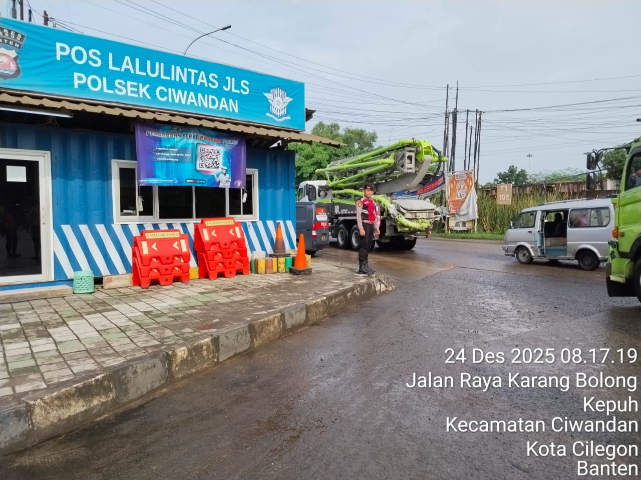 Kapolres Cilegon Polda Banten AKBP Dr. Martua Raja Taripar Laut Silitonga yang di wakili Kapolsek Ciwandan Polres Cilegon Polda Banten Kompol Andi Suherman mengatakan, "Guna terciptanya kelancaran arus Libur Natal Dan tahun Baru 2025-2026, Pospam 5 Ciwandan merekayasa arus lalu lintas yang akan menuju Pelabuhan Pelindo Banten.