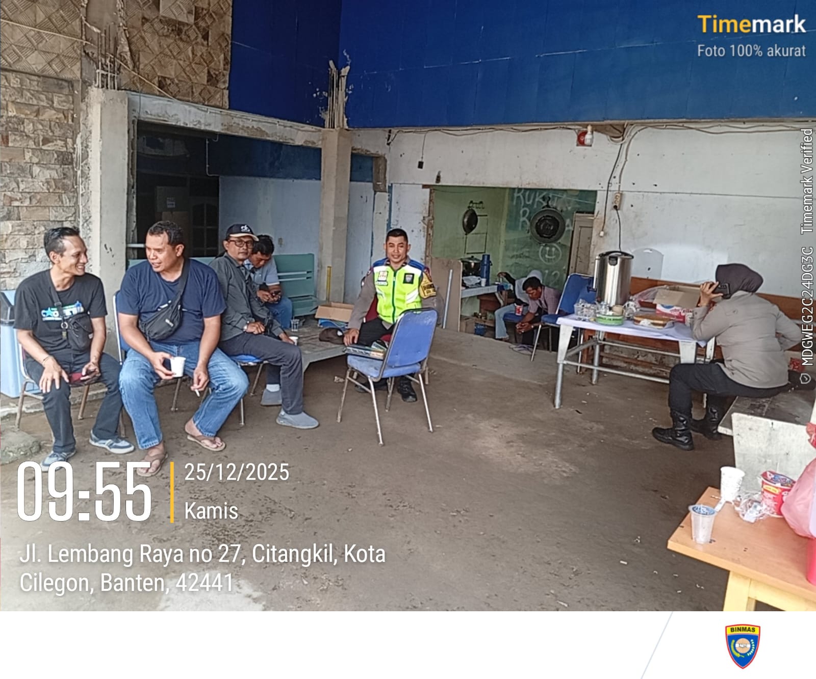 Cilegon – Kapolsek Ciwandan Beserta Personil Polsek Ciwandan Polres Cilegon Polda Banten melaksanakan Pengamanan Tempat Ibadah Umat Kristiani pada kegiatan Ibadah Perayaan Natal Tahun 2023 Di Rumah Doa GBI Pimpinan Pdt. Paul Lingkungan Lembang RT. 002 RW. 004 Kecamatan Citangkil Kota Cilegon, Kamis (25/12/2025).