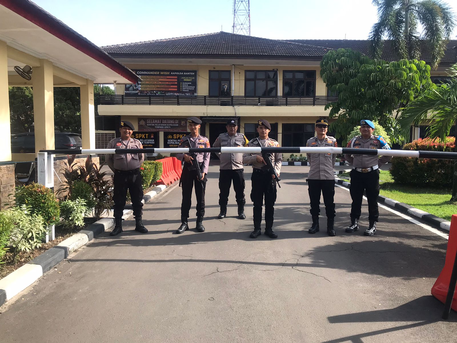 Cilegon, personel Satreskrim Polres Cilegon Polda Banten melaksanakan piket di penjagaan pintu masuk Polres Cilegon Polda Banten untuk memastikan mako Polres Cilegon dalam keadaan aman dan nyaman dalam melayani Masyarakat. sabtu (27/12/2025).