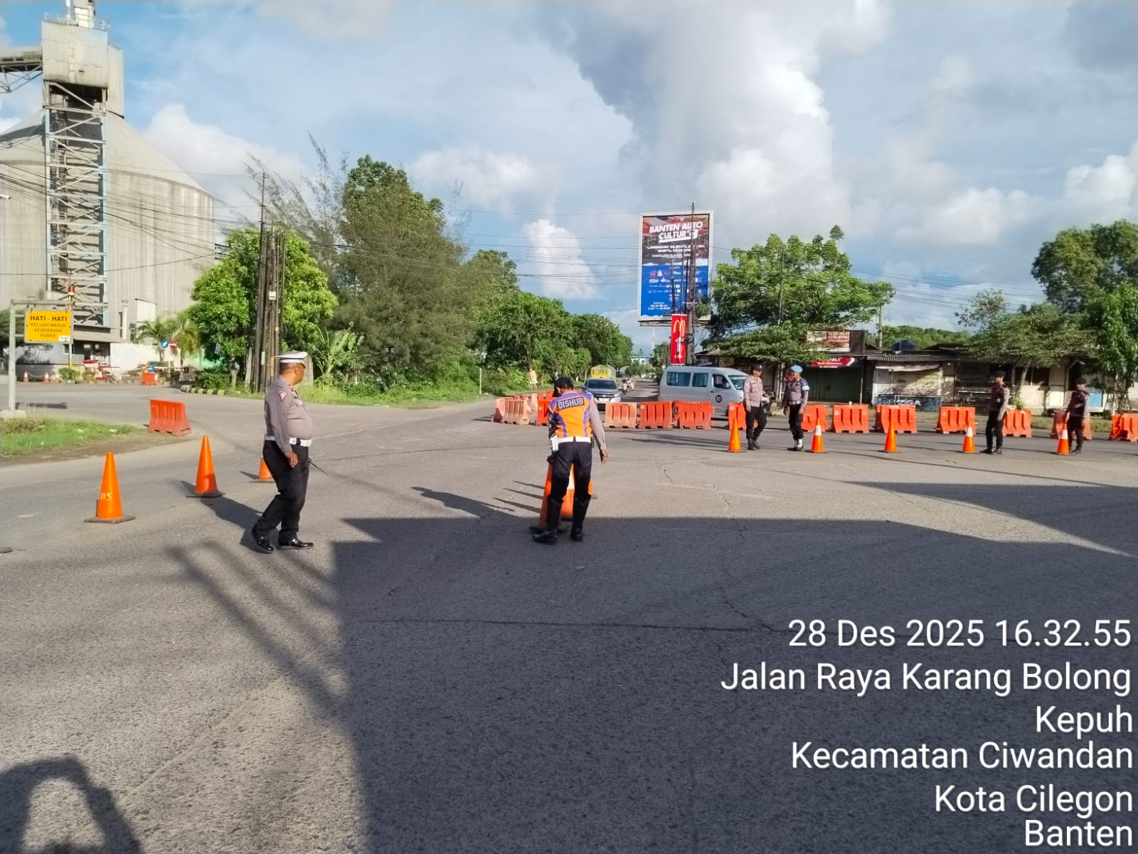 Cilegon - Guna Menciptakan kelancaran arus Lalu-Lintas Perayaan Natal Dan Tahun Baru menuju jalur wisata Anyer-Cinagka yang ada di daerah hukum Polsek Ciwandan Polres Cilegon Polda Banten,Pospam 5 Ciwandan berlakukan rekayasa Lalu lintas, Minggu (28/12/2025).