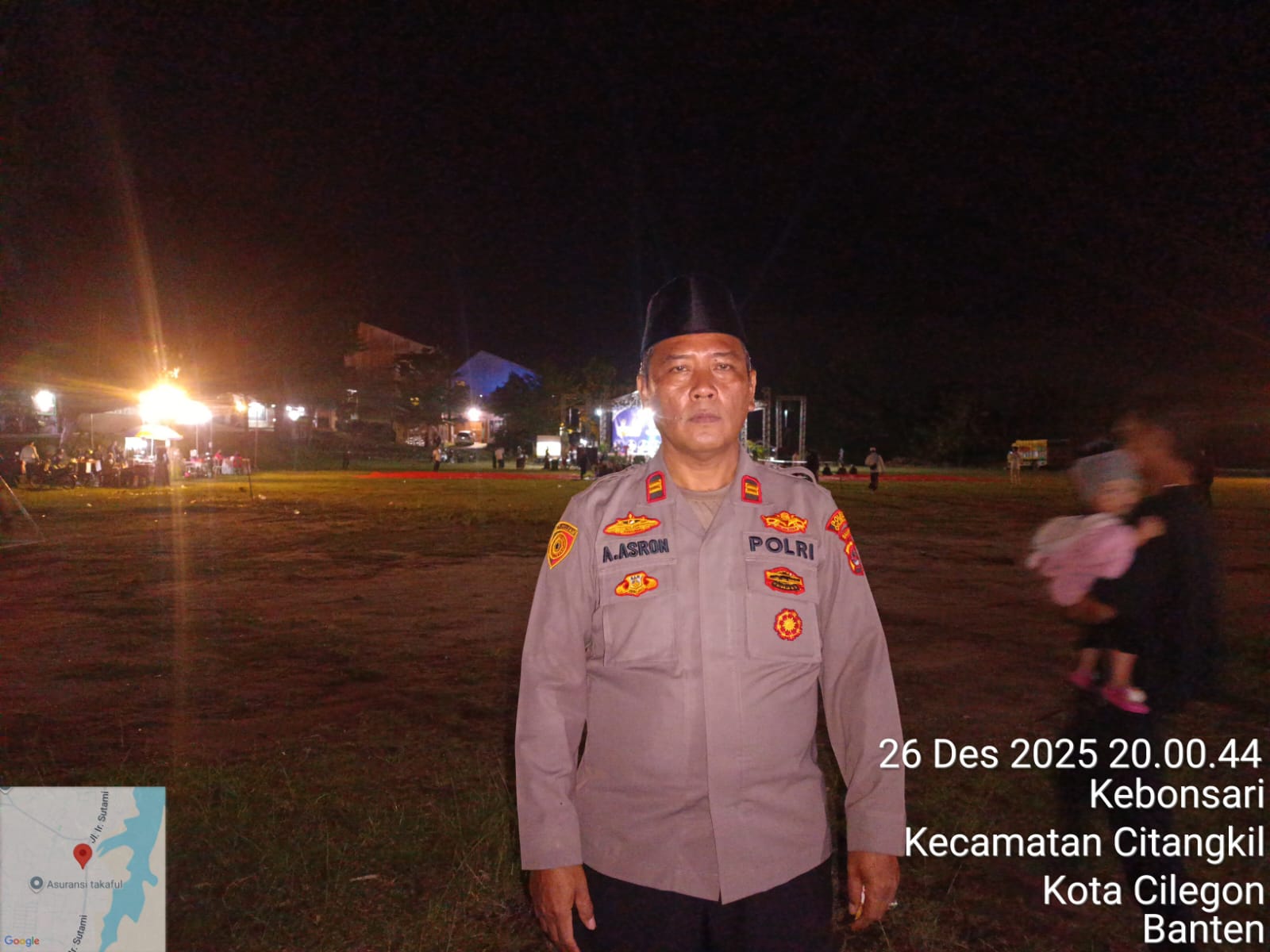 Cilegon - Polres Cilegon melalui Polsek Ciwandan melaksanakan monitoring kegiatan Gema Cilegon Bersholawat dalam rangka Majlis Sholawat El-Musawa ke-3 dan peringatan Isro Mi'raj Nabi Muhammad SAW di Lapangan Tong Alamat, Kebon Sari, Citangkil, Minggu (28/12/2025).