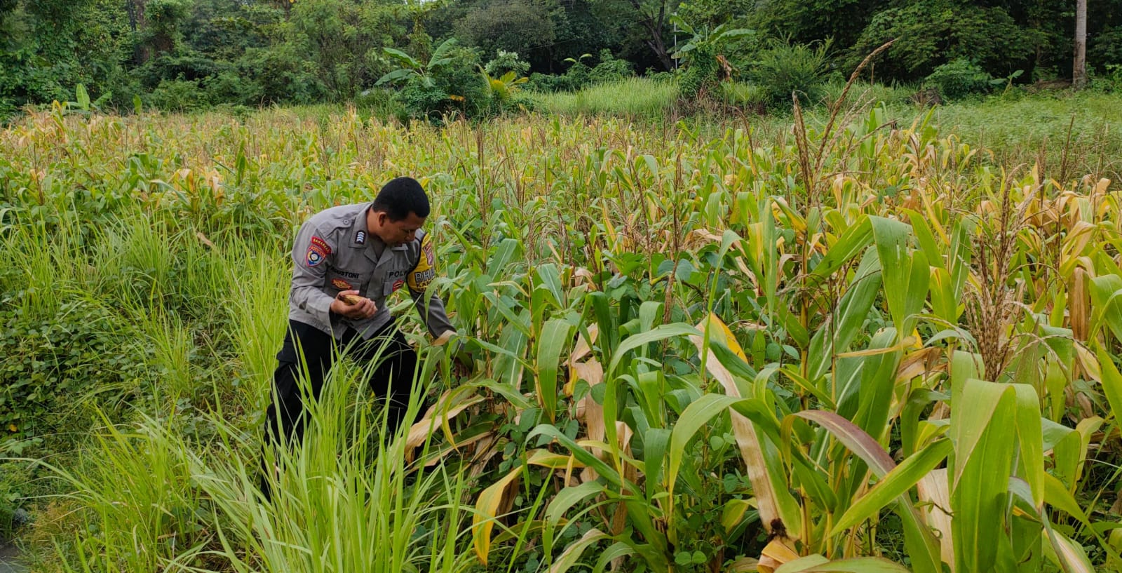 Personel Polsek Purwakarta Polres Cilegon Cek Tanaman Jagung, Dukung Program Ketahanan Pangan