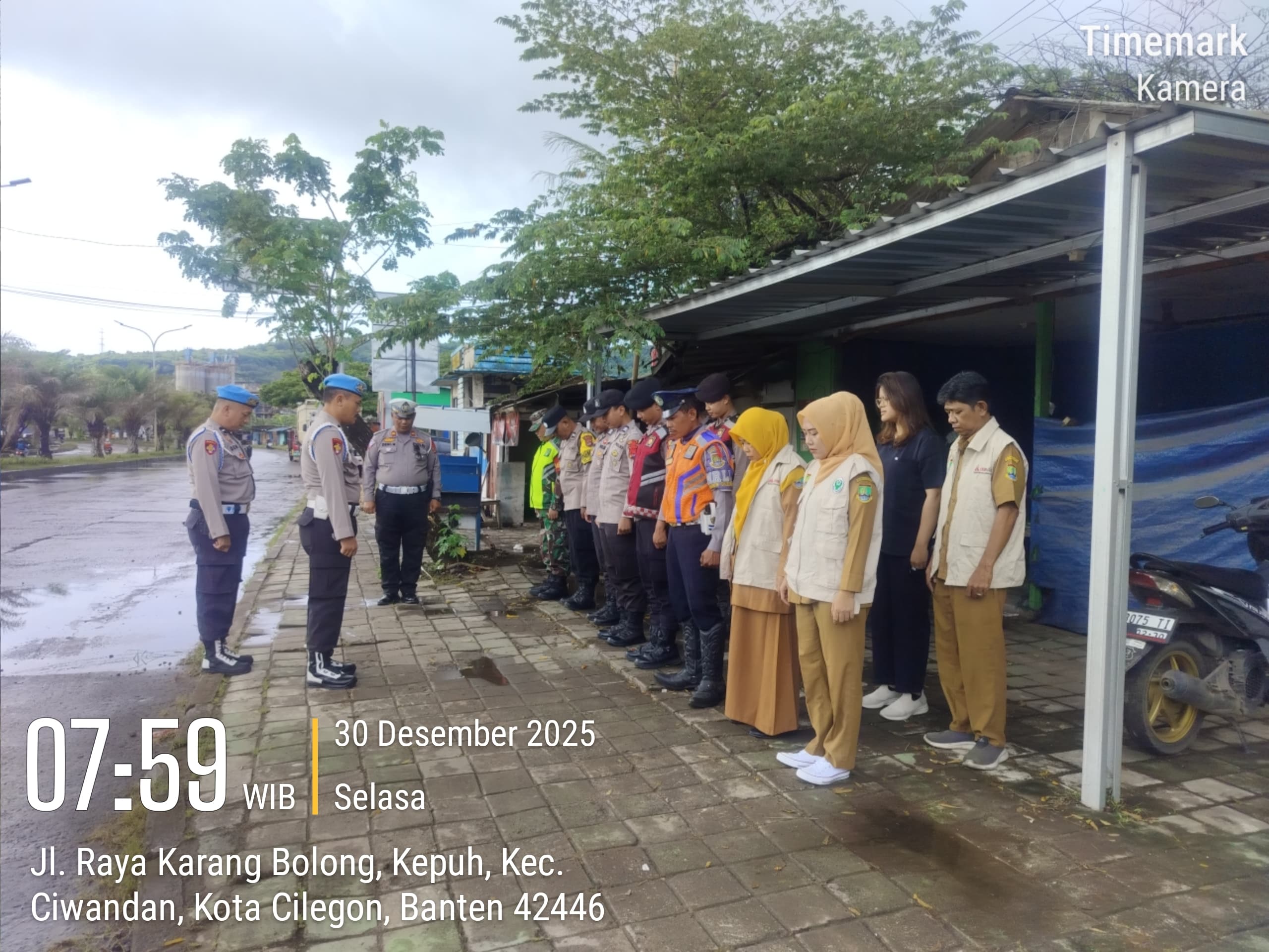 Cilegon - Personil Pospam 5 Ciwandan Polsek Ciwandan Polres Cilegon Polda Banten melaksanakan Apel Kesiapan Pelaksanaan kegiatan pengamanan Arus Lalu-lintas Wisata Dalan Operasi Lilin Maung 2025, Selasa (30/12/2025).