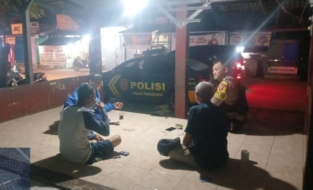 Personil Bhabinkamtibmas Aiptu Daryo.E melaksanakan patroli dialogis dengan menyapa petugas jaga ronda serta memberikan himbauan ketertiban dan keamanan masyarakat (kamtibmas) kepada warga di Lingkungan Daliran