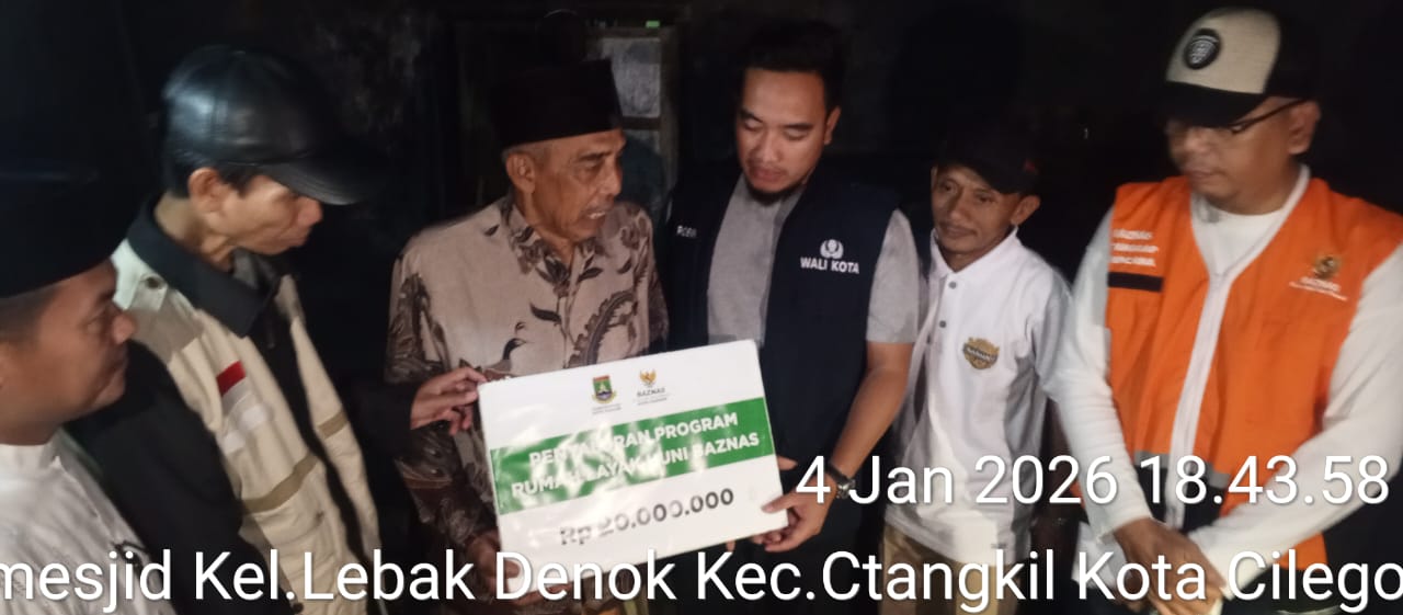 Cilegon - Polres Cilegon melalui Bhabinkamtibmas Kel Lebak Denok mendampingi Walikota Cilegon dan BAZNAS menyalurkan bantuan kepada Bapak TB Ahmad Asep Fuadi, pemilik rumah yang terdampak rubuh akibat cuaca ekstrem. Senin (05/01/2026).