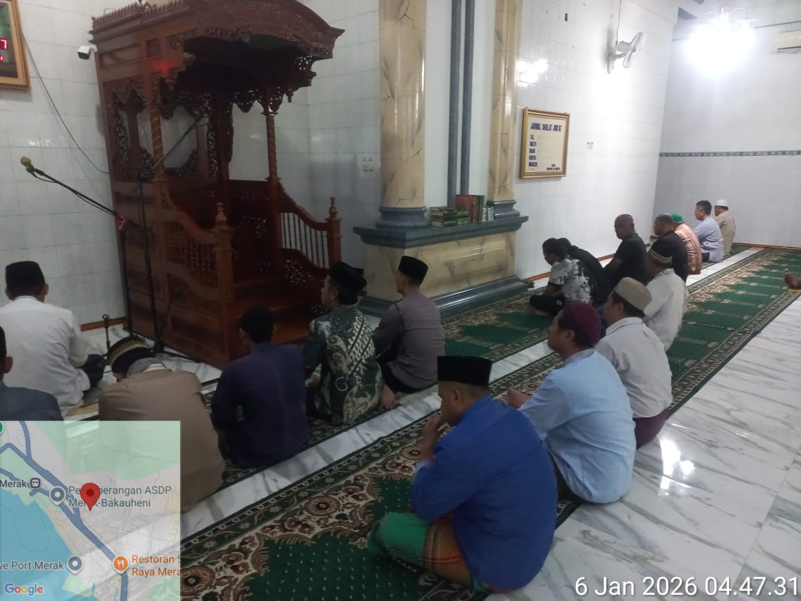 Cilegon – Personil Kskp Merak Polres Cilegon Polda Banten menggelar kegiatan Pembinaan Rohani dengan shalat subuh keliling di Masjid Yang ada Di Daerah hukum Polsek Kp Merak Polres Cilegon Polda Banten, Selasa (06/01/2026).