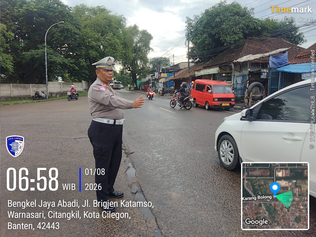 Cilegon - Tingginya mobilitas masyarakat pada jam-jam sibuk, tingkat kerawanan baik itu kemacetan ataupun kecelakaan pasti ada potensi, sehingga untuk mengantisipasi hal tersebut Personil Polsek Ciwandan Polres Cilegon Polda Banten Bhabinkamtibmas melaksanakan Strong Point pada sejumlah lokasi, Kamis (08/01/2026).