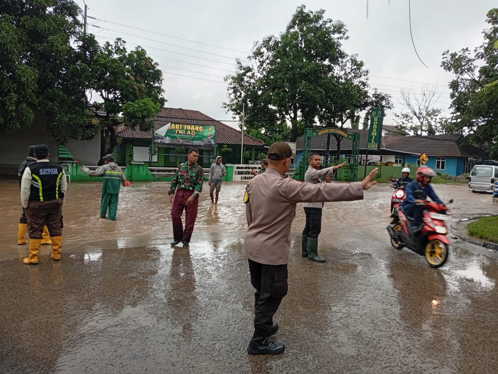 Personil Polsek Ciwandan Gerak Cepat Lakukan Rekayasa Dan Pengalihan Lalu-Lintas Saat Banjir.