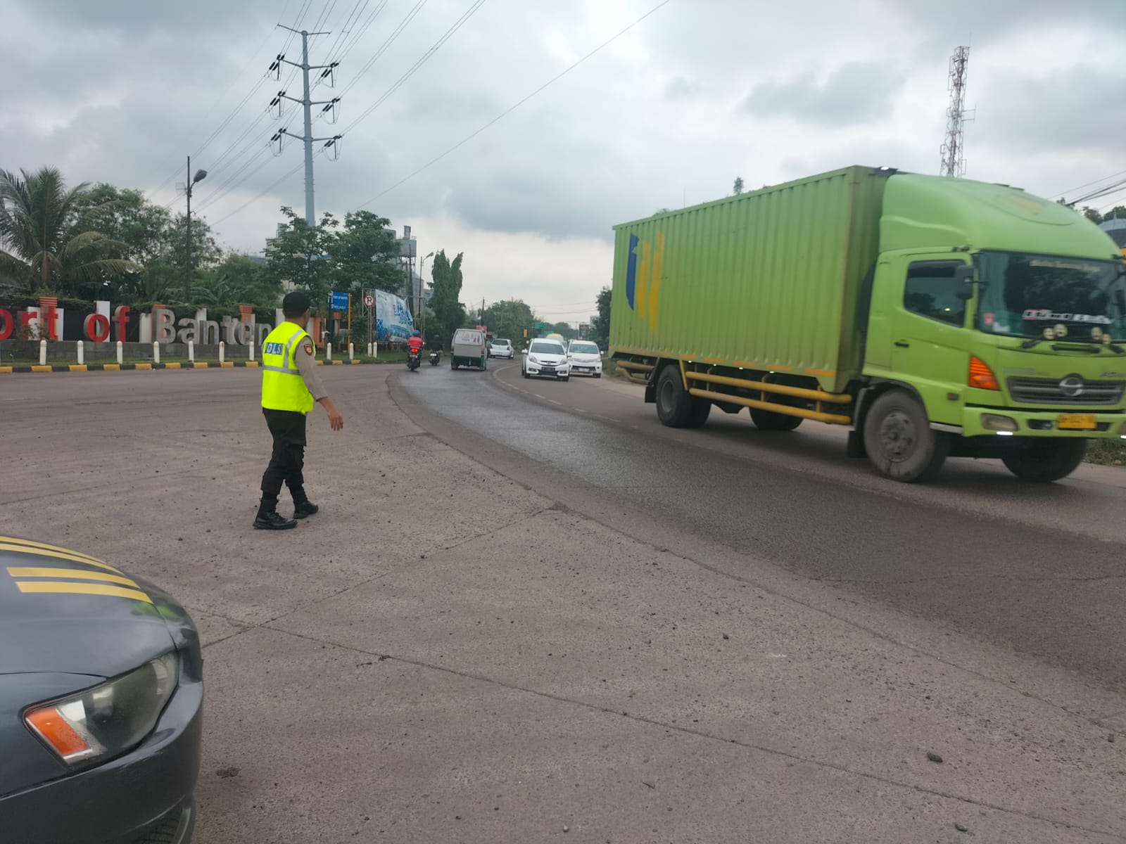 Kapolres Cilegon AKBP Martua Raja Taripar Laut Silitonga Melalui Kapolsek Kskp Banten Polres Cilegon AKP Fredo Leonard menyampaikan Laksanakan Pengamanan Sesuai plotinganya lakukan Pengaturan Supaya Arus Lalu Lintas tetap Berjalan lancar dan Pastikan tidak ada hambatan.