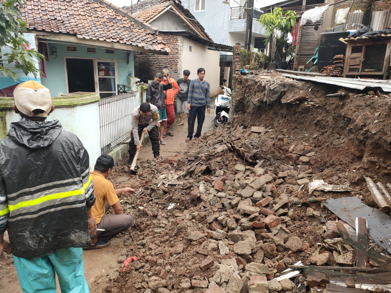 Personil Bhabinkamtibmas Polsek Purwakarta Bantu Warga terdampak Longsor di Kelurahan Kotabumi