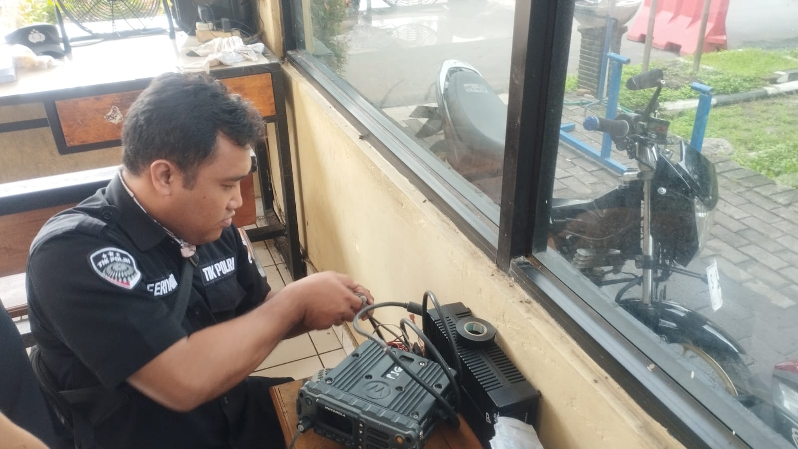 Anggota Tik Polres Cilegon Menyiapkan Sarana dan Prasarana Alkom Dalam pelaksanaan tugas tersebut anggota TIK Polres Cilegon yang bertanggung jawab untuk menyiapkan peralatan sarana alkom berupa handy talky. Selain itu agar di tidak ada gangguan pada jaringan, sebelum pelaksanaan anggota TIK melakukan pemeriksaan terhadap sarana dan prasarana tersebut . Satu jam sebelum sarana alkom digunakan. Kapolres Cilegon AKBP. DR. MARTUA RAJA TARIPAR LAUT SILITONGA. melalui Kasi TIK AIPTU Suwanto, S.H. menyampaikan bahwa “untuk menunjang kelancaran penyampaian informasi anggota TIk Polres Cilegon selalu memeriksa sarana dan prasarana tersebut, sebelum maupun pada saat pelaksanaan akan selalu di monitor”