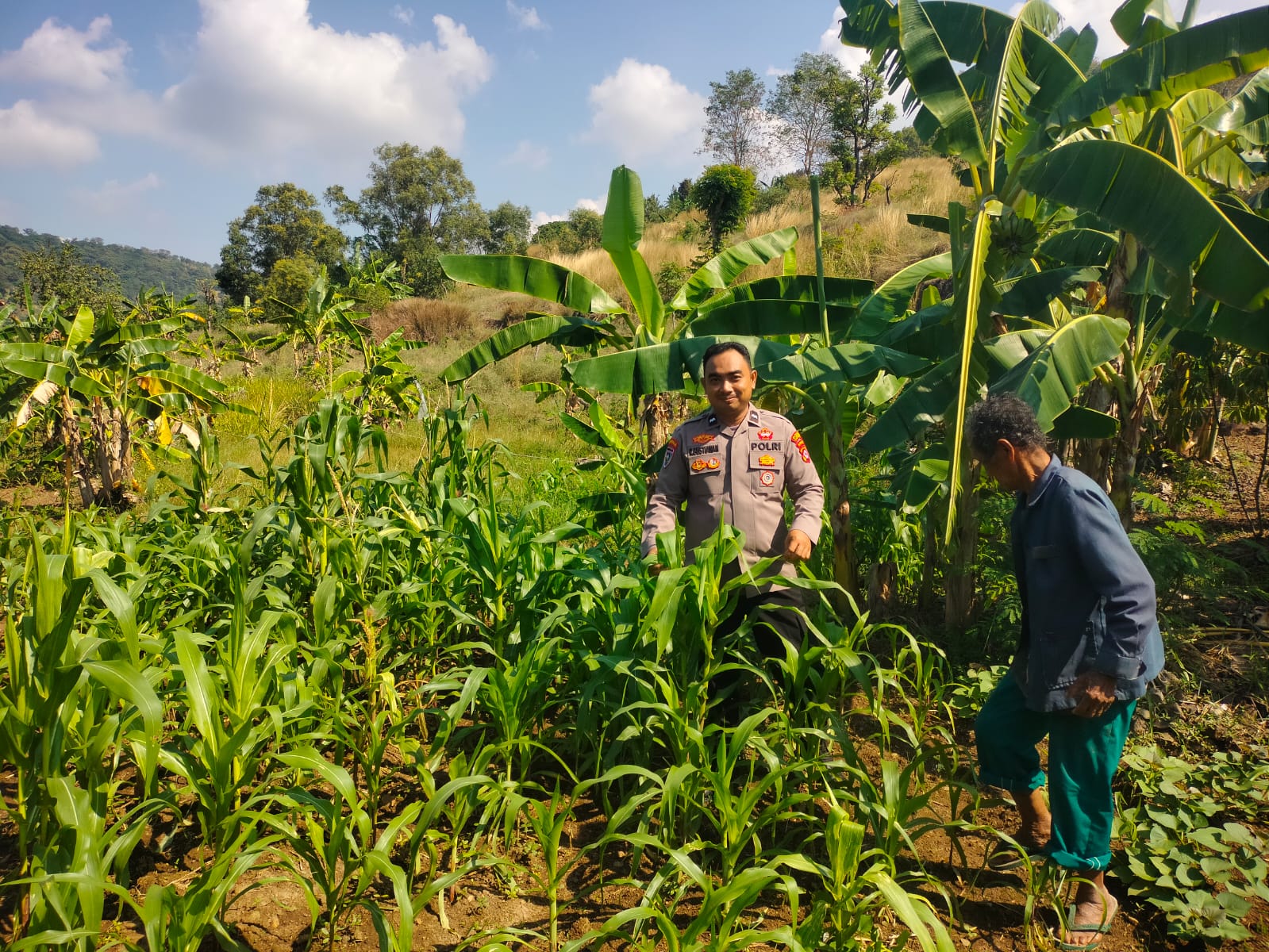 Pantau lahan jagung pok tani sinarjaya kecamatan.puloampel Desa Mangunreja oleh Bhabinkamtibmas Polsek Puloampel