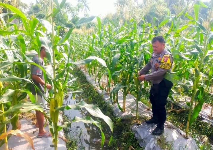 AIPTU DARYO EFENDI, PERSONIL POLSEK PURWAKARTA MONITORING TANAMAN JAGUNG