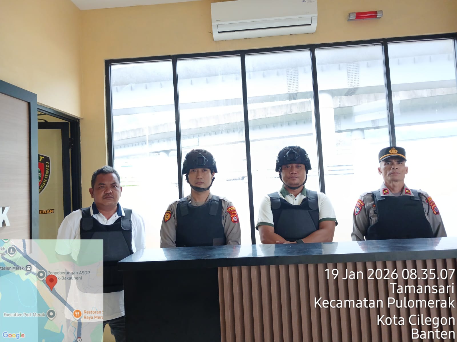 Cilegon - Personel piket jaga Polsek Kskp Merak Polres Cilgon Polda Banten melaksanakan siaga 1 Polsek pelaksanaan Sispam Mako oleh piket siaga dipimpin oleh Kspk Polsek Kskpy Merak Polres Cilegon Polda Banten, Senin (19/01/2026).