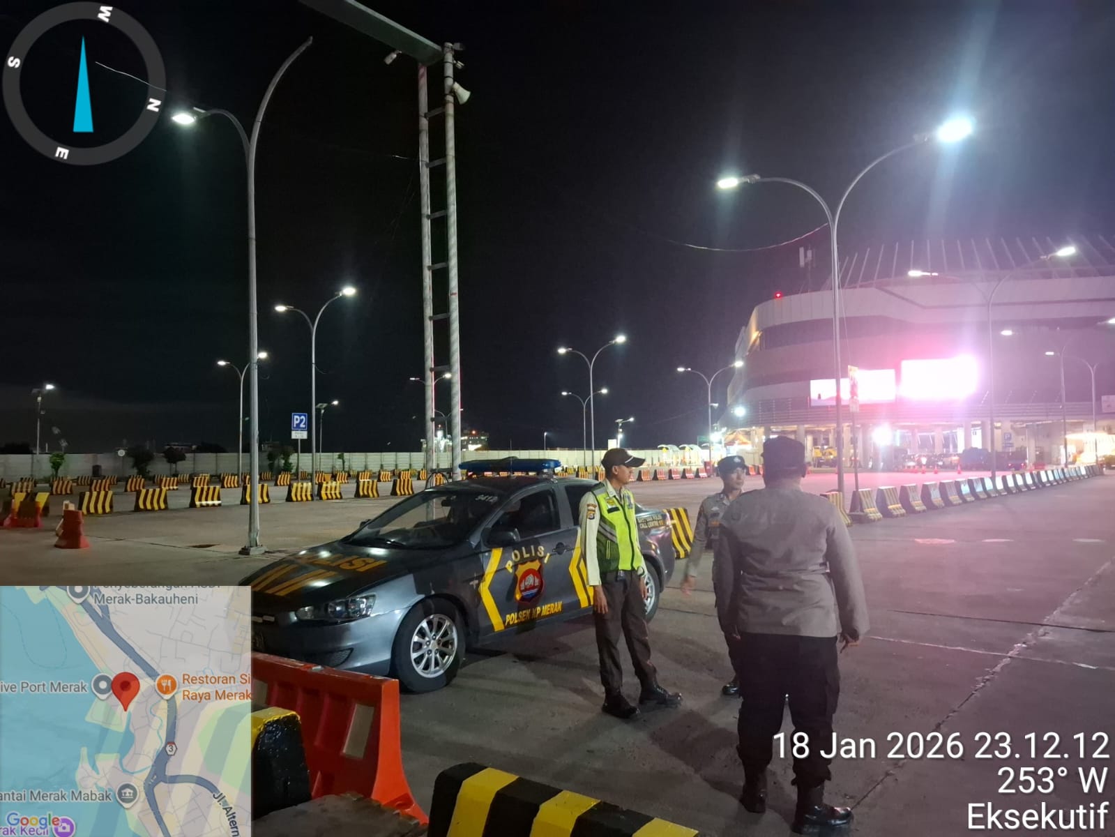 Cilegon - Personil Polsek Kskp Merak Polres Cilegon melaksanakan patroli di kawasan pelabuhan merak memberikan rasa aman dan damai, Senin (19/01/2026)
