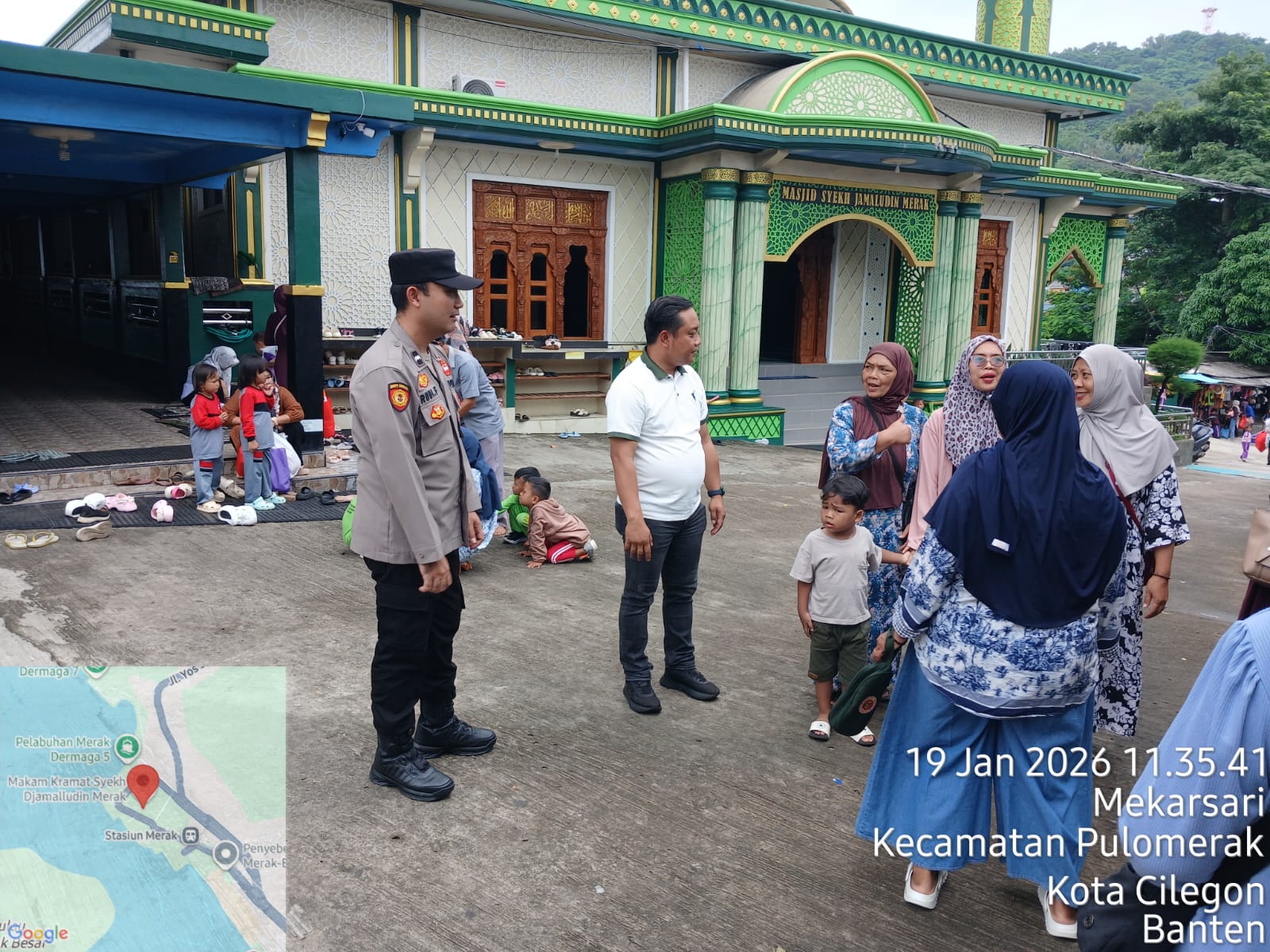 Cilegon - Personel Polsek Kskp Merak Polres Cilegon Polda Banten melaksanakan sambang dan patroli kawasan pelabuhan merak dalam rangka menjaga Harkamtibmas di Kawasan Pelabuhan Merak, Senin (19/01/2026).