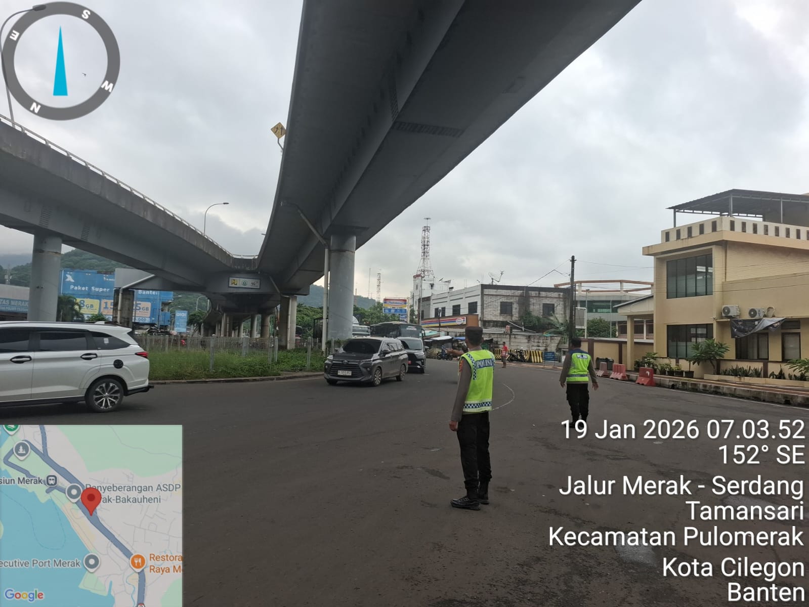 Cilegon - Dalam rangka peningkatan pelayanan prima kepada masyarakat, Kskp Merak Polres Cilegon Polda Banten melaksanakan pengaturan antrian R4 yang akan masuk ke Kapal Ferry di Pelabuhan Merak, Senin (19/01/2026).