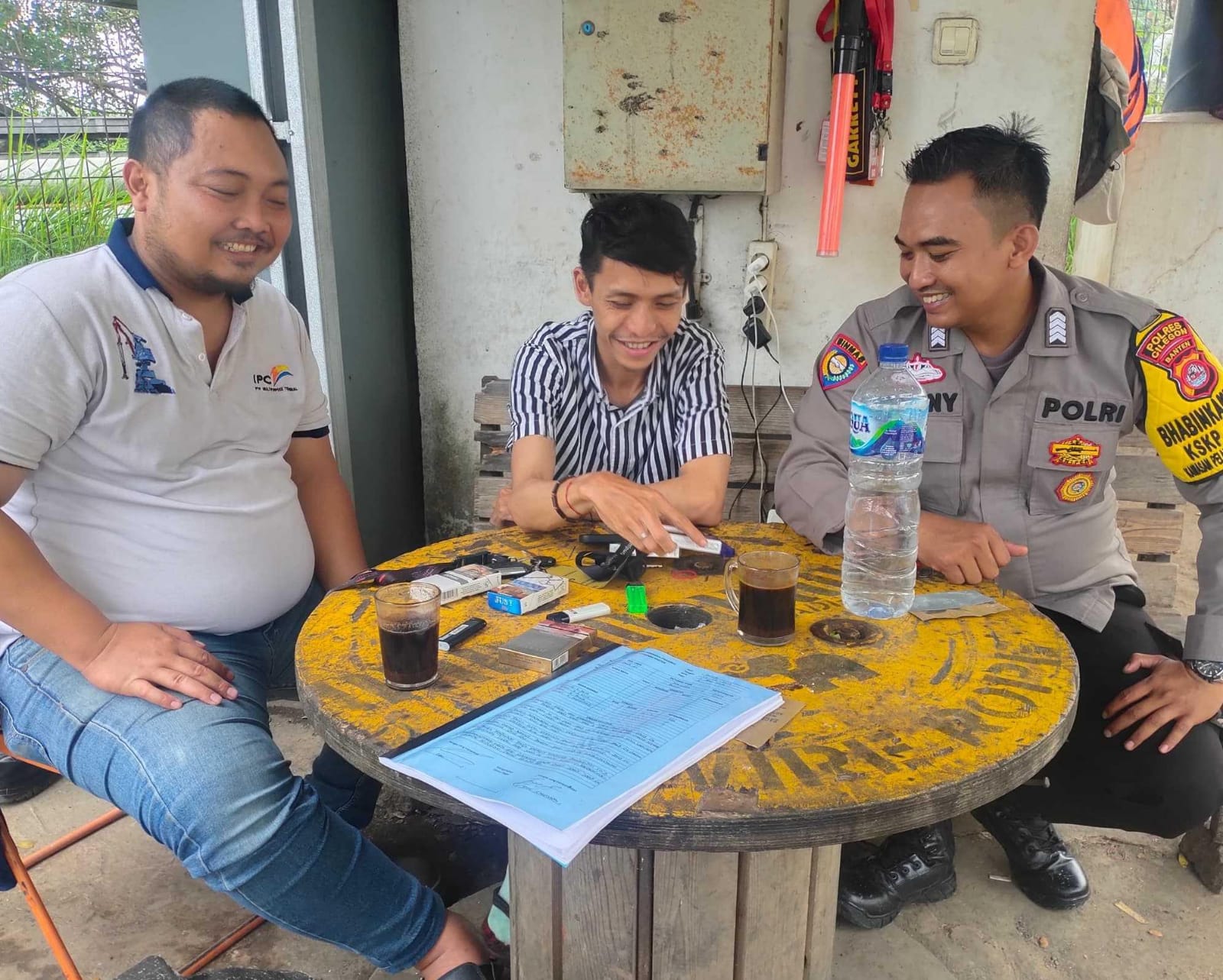 Jalin Silaturahmi, Bhabinkamtibmas Polsek KP Banten Berbincang dengan Buruh Sekitar Pelabuhan