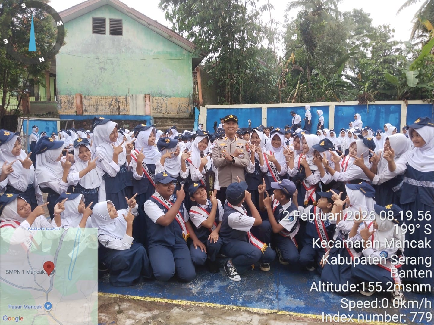 Mancak - Sebagai Pengemban Fungsi Harkamtibmas, Bhabinkamtibmas melaksanakan Kegiatan Pembina Upacara dan Silatuhrami SMPN 1 Mancak dalam rangka Program Quick Wins Presisi Kapolri dan Program Commander Wish Kapolres Cilegon "TRENDING"*. MINGGU, (02/02/2026).