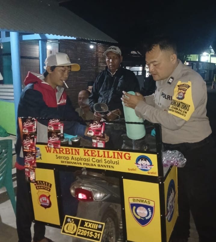 Kegiatan tersebut dilaksanakan oleh Bhabinkamtibmas Kelurahan Kebondalem, Aiptu Daryo, di Lingkungan Daliran, Kelurahan Kebondalem, Kecamatan Purwakarta, Kota Cilegon, dengan menyambangi warga melalui sarana warung kopi keliling guna menyerap aspirasi serta menyampaikan pesan-pesan kamtibmas.