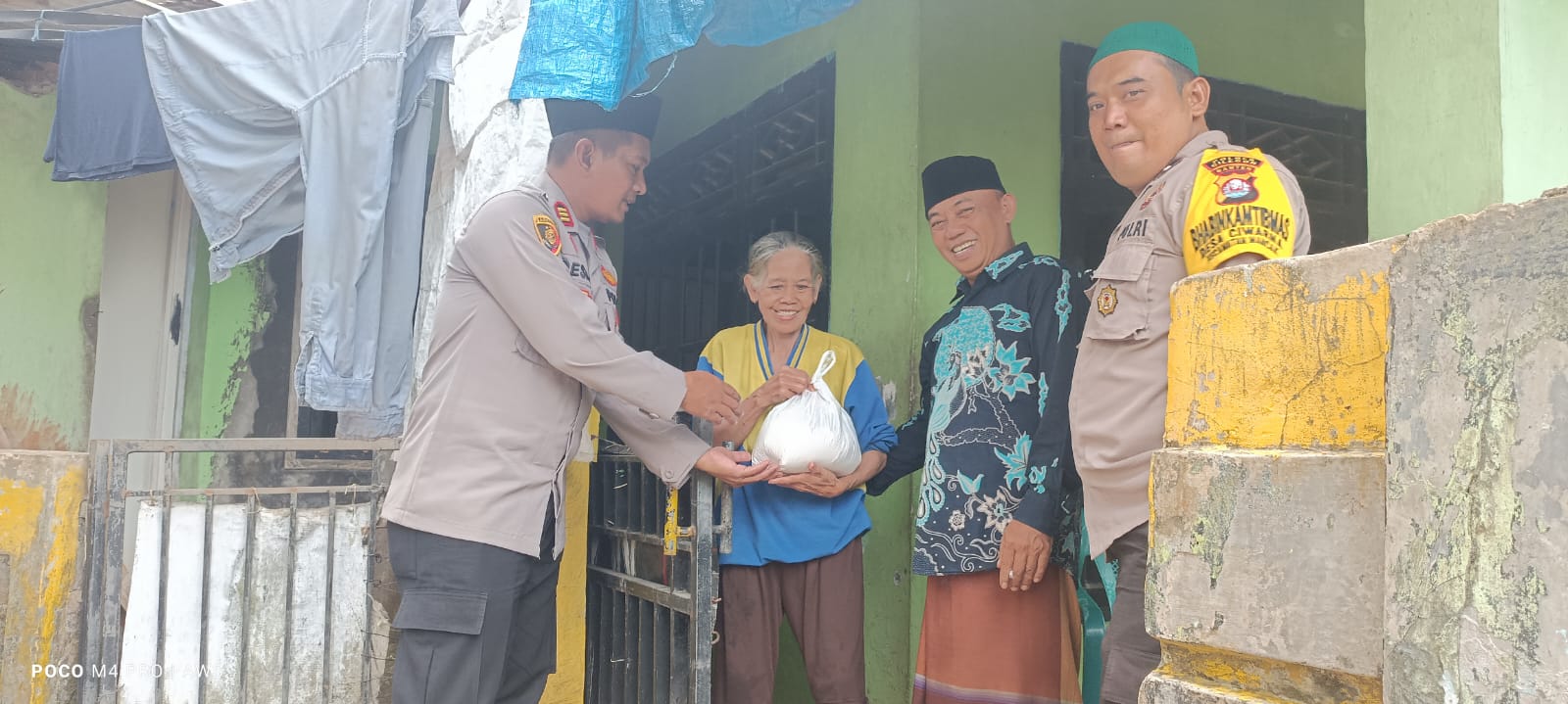 Personil Polsek Mancak Polres Cilegon Polda Banten Berikan Bantuan Sembako.