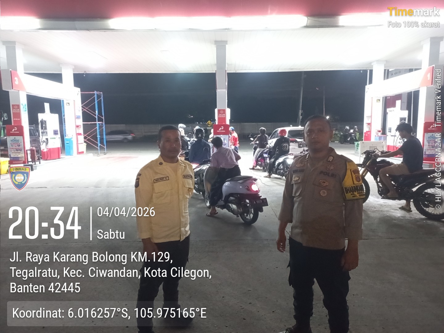 Cilegon - Kepolisian Polsek Ciwandan Polres Cilegon Polda Banten, melakukan pengecekan stok Bahan Bakar Minyak (BBM) di dua SPBU di wilayah Ciwandan, Cilegon, Sabtu (04/04/2026).
