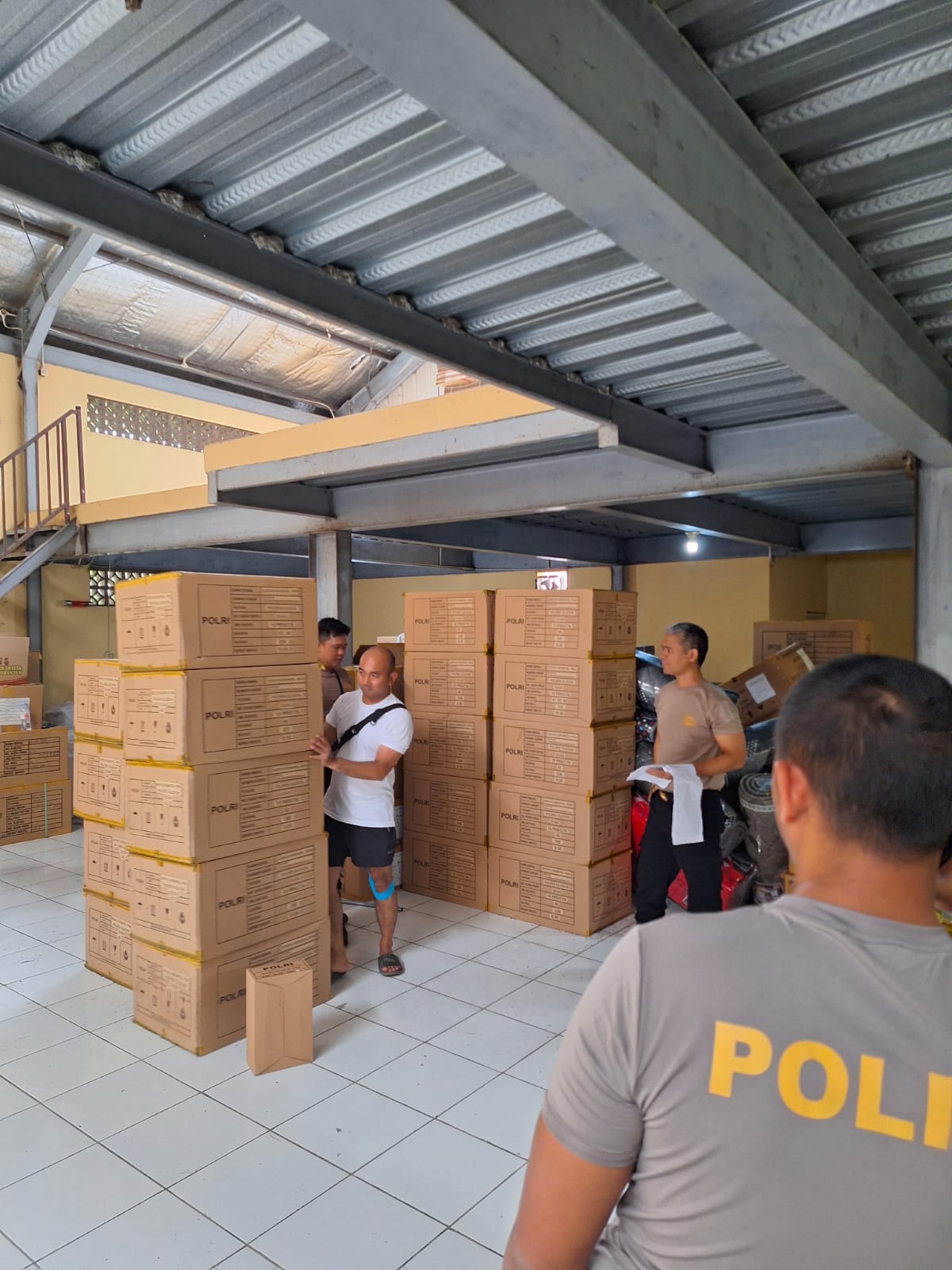 STAFF LOGISTIK MEMBERSIHKAN SENJATA API DI GUDANG POLRES CILEGON
